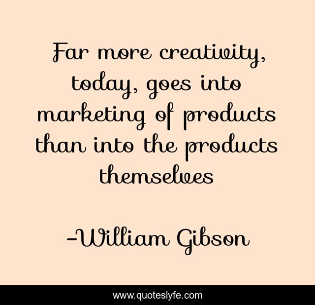 "William Gibson Quotes." Quoteslyfe.com, 2025. Mon. 08 Dec. 2025. <https://www.quoteslyfe.com/quote/Far-more-creativity-today-goes-into-marketing-237515>.