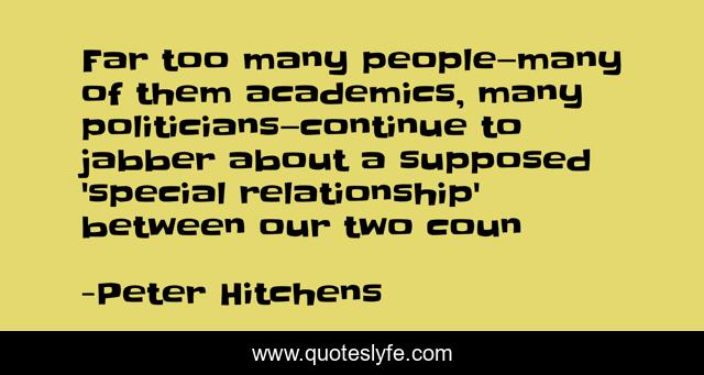 This page presents the quote "Far too many people—many of them academics, many politicians—continue to jabber about a supposed 'special relationship' between our two coun". Author of this quote is Peter Hitchens. This quote is about england, special-relationship, united-states, uk-us-relations, international-relations,.