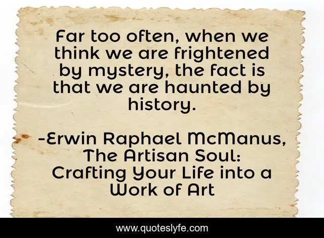 This page presents the quote "Far too often, when we think we are frightened by mystery, the fact is that we are haunted by history.". Author of this quote is Erwin Raphael McManus, The Artisan Soul: Crafting Your Life into a Work of Art. This quote is about enthusiasm, self-improvement, inspirational,.