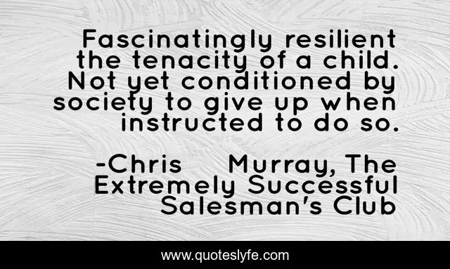 "Chris Murray, The Extremely Successful Salesman's Club Quotes." Quoteslyfe.com, 2025. Fri. 05 Dec. 2025. <https://www.quoteslyfe.com/quote/Fascinatingly-resilient-the-tenacity-of-a-child-109716>.