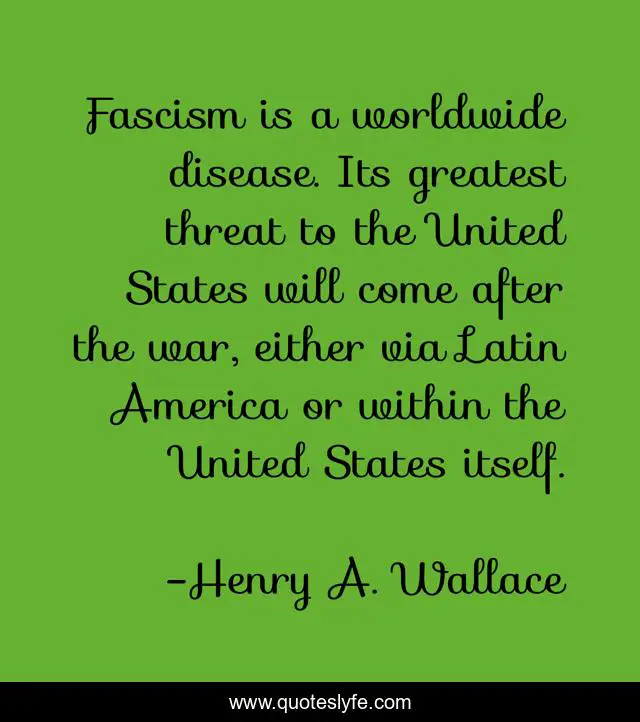 "Henry A. Wallace Quotes." Quoteslyfe.com, 2025. Sat. 06 Dec. 2025. <https://www.quoteslyfe.com/quote/Fascism-is-a-worldwide-disease-Its-greatest-285966>.