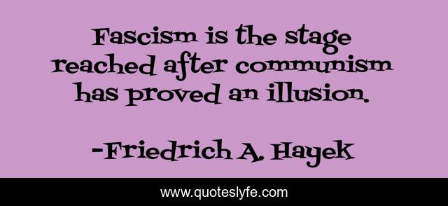 This page presents the quote "Fascism is the stage reached after communism has proved an illusion.". Author of this quote is Friedrich A. Hayek. This quote is about fascism, communism,.