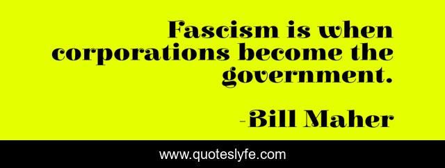 This page presents the quote "Fascism is when corporations become the government.". Author of this quote is Bill Maher. This quote is about government, corporatism, capitalism, fascism, politics, america, corruption,.