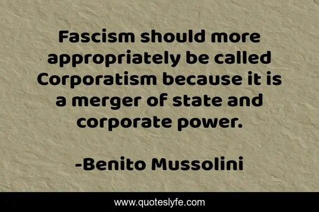 This page presents the quote "Fascism should more appropriately be called Corporatism because it is a merger of state and corporate power.". Author of this quote is Benito Mussolini. .
