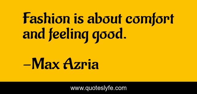 This page presents the quote "Fashion is about comfort and feeling good.". Author of this quote is Max Azria. This quote is about fashion, comfort,.