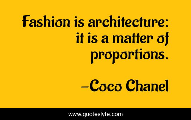 This page presents the quote "Fashion is architecture: it is a matter of proportions.". Author of this quote is Coco Chanel. This quote is about matter, fashion, design,.