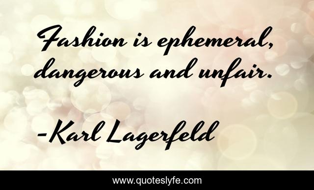"Karl Lagerfeld Quotes." Quoteslyfe.com, 2025. Mon. 08 Dec. 2025. <https://www.quoteslyfe.com/quote/Fashion-is-ephemeral-dangerous-and-unfair-65475>.