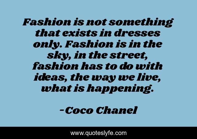 This page presents the quote "Fashion is not something that exists in dresses only. Fashion is in the sky, in the street, fashion has to do with ideas, the way we live, what is happening.". Author of this quote is Coco Chanel. .