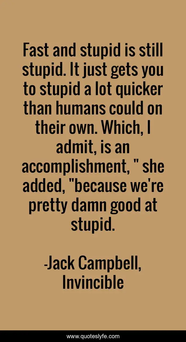 "Jack Campbell, Invincible Quotes." Quoteslyfe.com, 2025. Fri. 05 Dec. 2025. <https://www.quoteslyfe.com/quote/Fast-and-stupid-is-still-stupid-It-233815>.