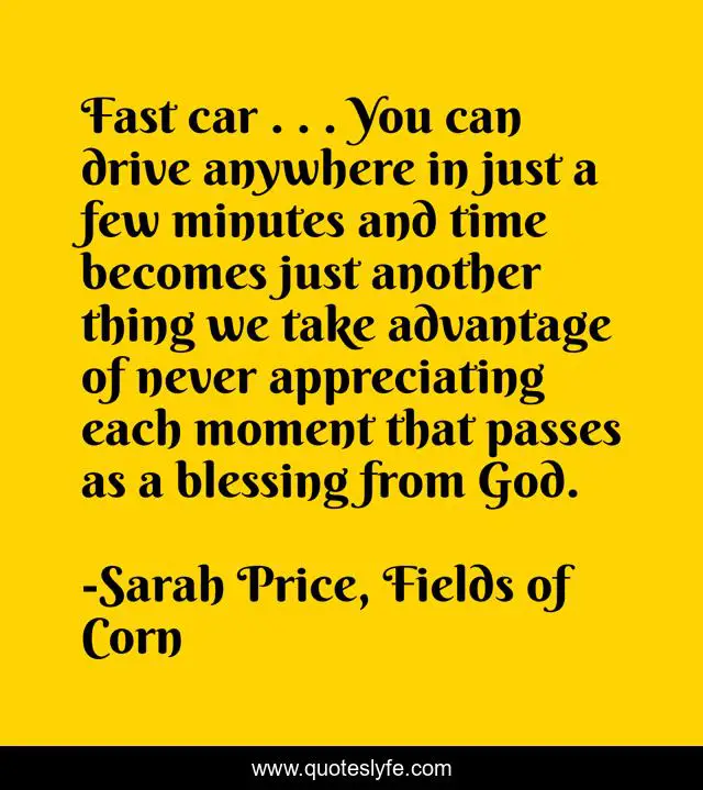 "Sarah Price, Fields of Corn Quotes." Quoteslyfe.com, 2025. Sun. 07 Dec. 2025. <https://www.quoteslyfe.com/quote/Fast-car-You-can-drive-anywhere-in-254521>.