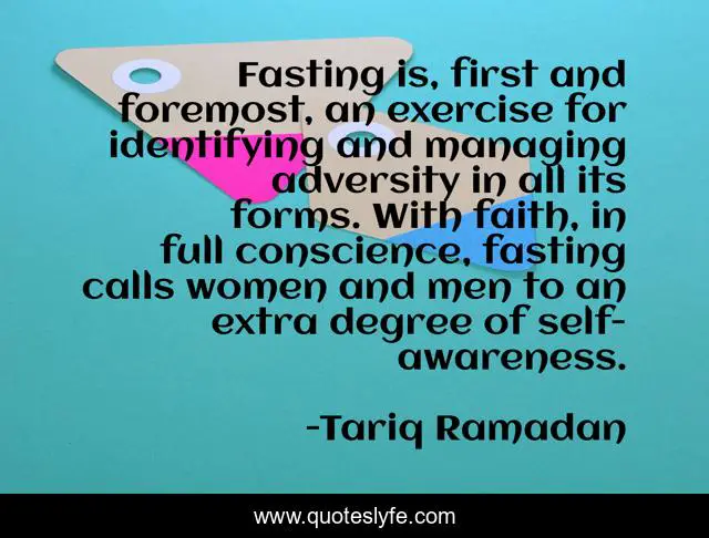 This page presents the quote "Fasting is, first and foremost, an exercise for identifying and managing adversity in all its forms. With faith, in full conscience, fasting calls women and men to an extra degree of self-awareness.". Author of this quote is Tariq Ramadan. This quote is about men, adversity, women,.