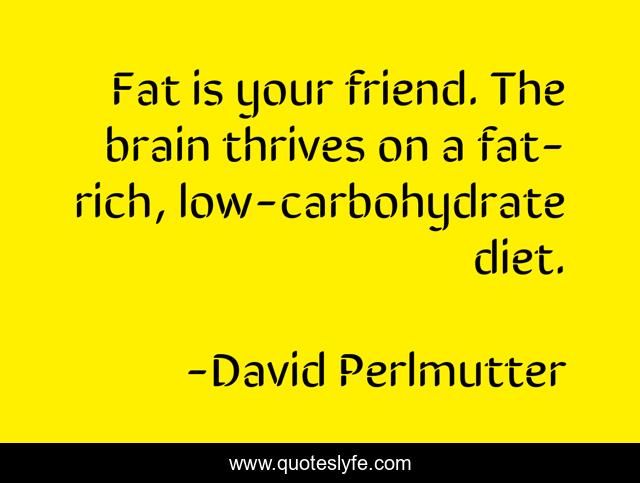 This page presents the quote "Fat is your friend. The brain thrives on a fat-rich, low-carbohydrate diet.". Author of this quote is David Perlmutter. This quote is about brain, friend, fat,.