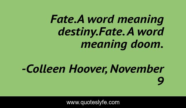 "Colleen Hoover, November 9 Quotes." Quoteslyfe.com, 2025. Sat. 06 Dec. 2025. <https://www.quoteslyfe.com/quote/Fate-A-word-meaning-destiny-Fate-A-153743>.