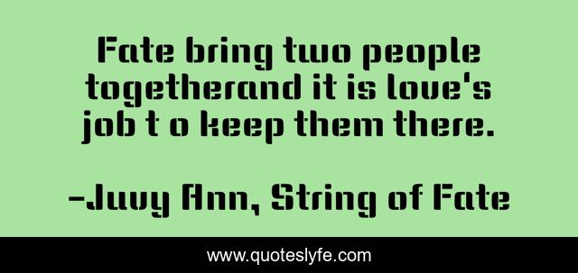"Juvy Ann, String of Fate Quotes." Quoteslyfe.com, 2025. Mon. 08 Dec. 2025. <https://www.quoteslyfe.com/quote/Fate-bring-two-people-togetherand-it-is-100602>.