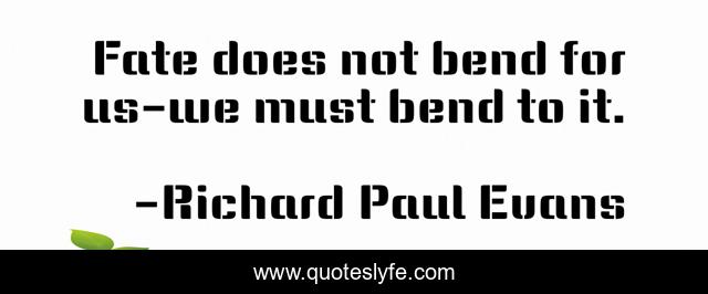 This page presents the quote "Fate does not bend for us-we must bend to it.". Author of this quote is Richard Paul Evans. .