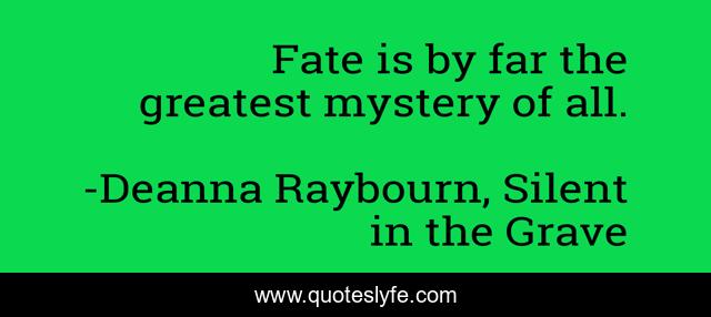 This page presents the quote "Fate is by far the greatest mystery of all.". Author of this quote is Deanna Raybourn, Silent in the Grave. This quote is about mystery, fate,.