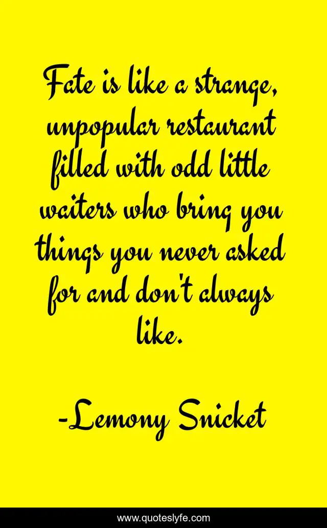 "Lemony Snicket Quotes." Quoteslyfe.com, 2025. Mon. 08 Dec. 2025. <https://www.quoteslyfe.com/quote/Fate-is-like-a-strange-unpopular-restaurant-5344>.