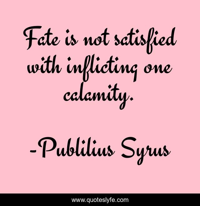 "Publilius Syrus Quotes." Quoteslyfe.com, 2025. Fri. 05 Dec. 2025. <https://www.quoteslyfe.com/quote/Fate-is-not-satisfied-with-inflicting-one-153664>.