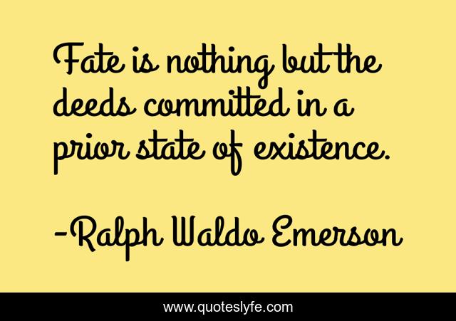 This page presents the quote "Fate is nothing but the deeds committed in a prior state of existence.". Author of this quote is Ralph Waldo Emerson. This quote is about enthusiasm, life, fate, inspirational,.