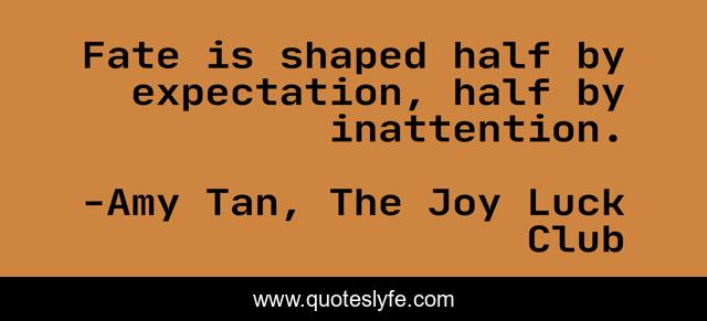"Amy Tan, The Joy Luck Club Quotes." Quoteslyfe.com, 2025. Sun. 07 Dec. 2025. <https://www.quoteslyfe.com/quote/Fate-is-shaped-half-by-expectation-half-153563>.