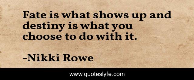 "Nikki Rowe Quotes." Quoteslyfe.com, 2025. Sun. 07 Dec. 2025. <https://www.quoteslyfe.com/quote/Fate-is-what-shows-up-and-destiny-63022>.