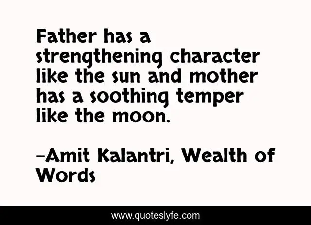 "Amit Kalantri, Wealth of Words Quotes." Quoteslyfe.com, 2025. Fri. 05 Dec. 2025. <https://www.quoteslyfe.com/quote/Father-has-a-strengthening-character-like-the-22854>.