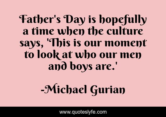 This page presents the quote "Father's Day is hopefully a time when the culture says, 'This is our moment to look at who our men and boys are.'". Author of this quote is Michael Gurian. This quote is about culture, father, time,.