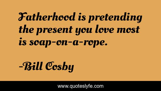 This page presents the quote "Fatherhood is pretending the present you love most is soap-on-a-rope.". Author of this quote is Bill Cosby. This quote is about fathers, mothers,.