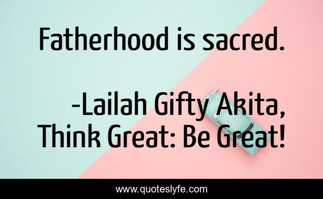 "Lailah Gifty Akita, Think Great: Be Great! Quotes." Quoteslyfe.com, 2025. Tue. 09 Dec. 2025. <https://www.quoteslyfe.com/quote/Fatherhood-is-sacred-85539>.