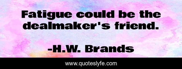 This page presents the quote "Fatigue could be the dealmaker's friend.". Author of this quote is H.W. Brands. This quote is about negotiation, patience, leadership, persuasion,.