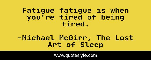 "Michael McGirr, The Lost Art of Sleep Quotes." Quoteslyfe.com, 2025. Fri. 05 Dec. 2025. <https://www.quoteslyfe.com/quote/Fatigue-fatigue-is-when-you-re-tired-42480>.
