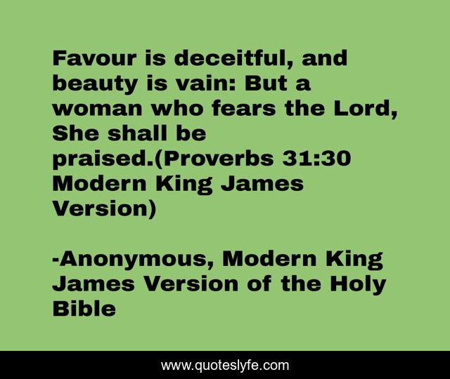 "Anonymous, Modern King James Version of the Holy Bible Quotes." Quoteslyfe.com, 2025. Sat. 06 Dec. 2025. <https://www.quoteslyfe.com/quote/Favour-is-deceitful-and-beauty-is-vain-60463>.