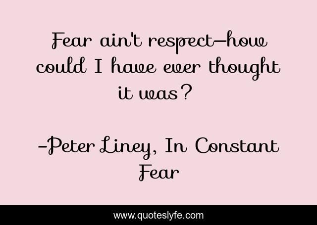 "Peter Liney, In Constant Fear Quotes." Quoteslyfe.com, 2025. Mon. 08 Dec. 2025. <https://www.quoteslyfe.com/quote/Fear-ain-t-respect-how-could-I-45406>.