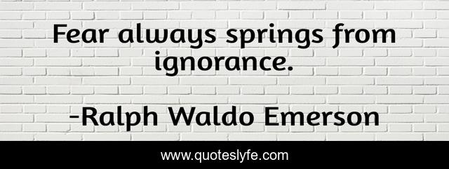 This page presents the quote "Fear always springs from ignorance.". Author of this quote is Ralph Waldo Emerson. .