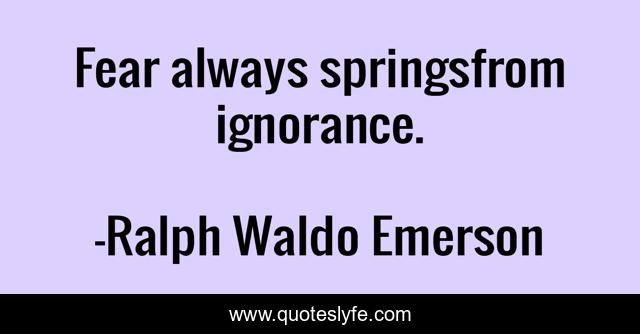 This page presents the quote "Fear always springsfrom ignorance.". Author of this quote is Ralph Waldo Emerson. This quote is about fear, ignorance,.