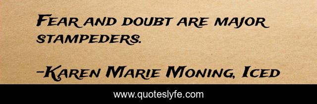 "Karen Marie Moning, Iced Quotes." Quoteslyfe.com, 2025. Fri. 05 Dec. 2025. <https://www.quoteslyfe.com/quote/Fear-and-doubt-are-major-stampeders-45246>.