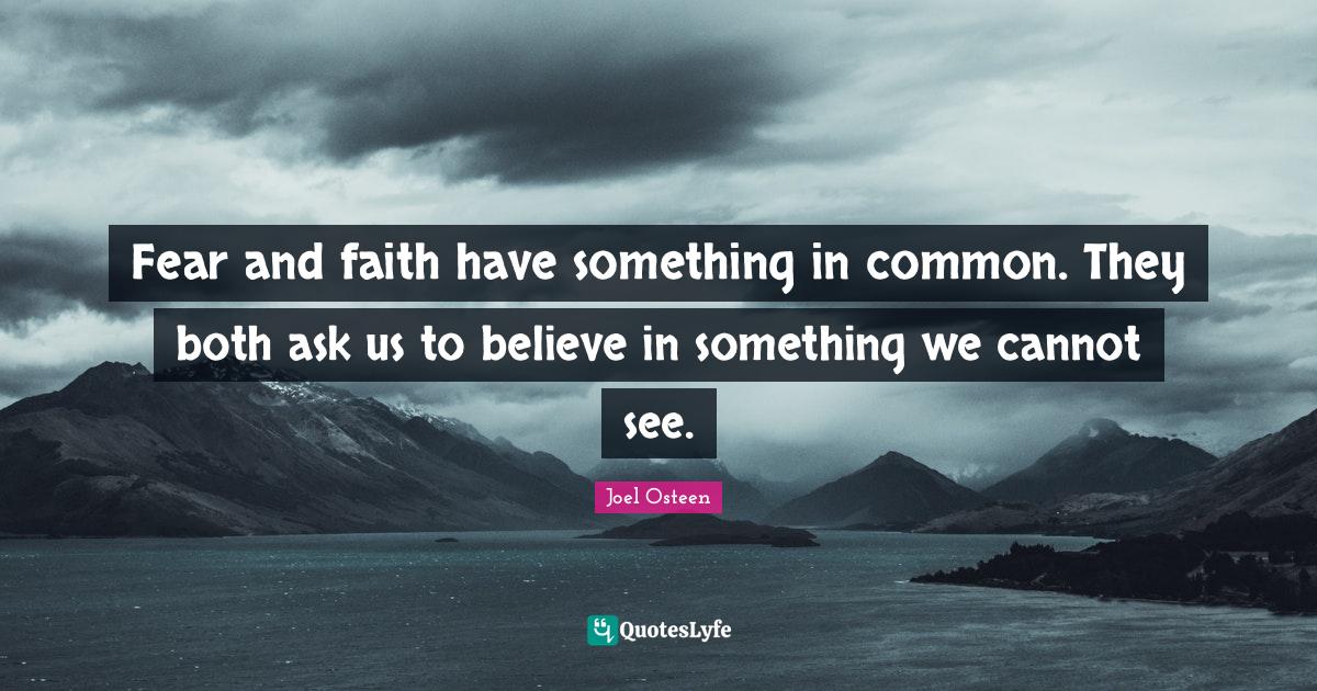 This page presents the quote "Fear and faith have something in common. They both ask us to believe in something we cannot see.". Author of this quote is Joel Osteen. This quote is about common, believe, fear and faith, life,.