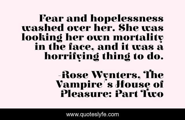 "Rose Wynters, The Vampire's House of Pleasure: Part Two Quotes." Quoteslyfe.com, 2025. Mon. 08 Dec. 2025. <https://www.quoteslyfe.com/quote/Fear-and-hopelessness-washed-over-her-She-202626>.