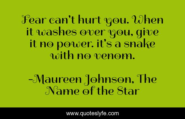 This page presents the quote "Fear can't hurt you. When it washes over you, give it no power. it's a snake with no venom.". Author of this quote is Maureen Johnson, The Name of the Star. .