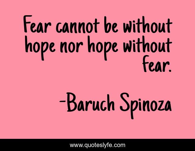 "Baruch Spinoza Quotes." Quoteslyfe.com, 2025. Sun. 07 Dec. 2025. <https://www.quoteslyfe.com/quote/Fear-cannot-be-without-hope-nor-hope-283096>.