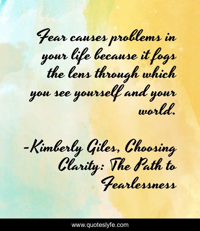 This page presents the quote "Fear causes problems in your life because it fogs the lens through which you see yourself and your world.". Author of this quote is Kimberly Giles, Choosing Clarity: The Path to Fearlessness. This quote is about fearless, fear,.
