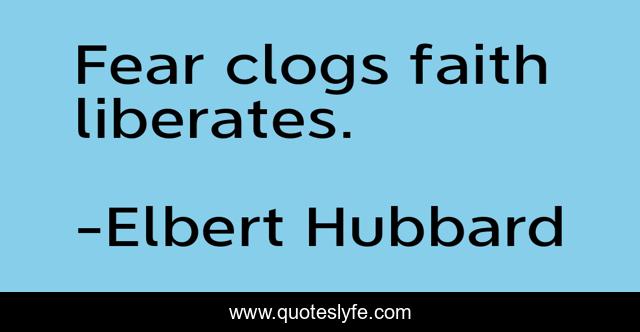 This page presents the quote "Fear clogs faith liberates.". Author of this quote is Elbert Hubbard. This quote is about faith, liberates,.