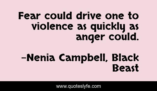 This page presents the quote "Fear could drive one to violence as quickly as anger could.". Author of this quote is Nenia Campbell, Black Beast. This quote is about anger, fear, violence, life,.