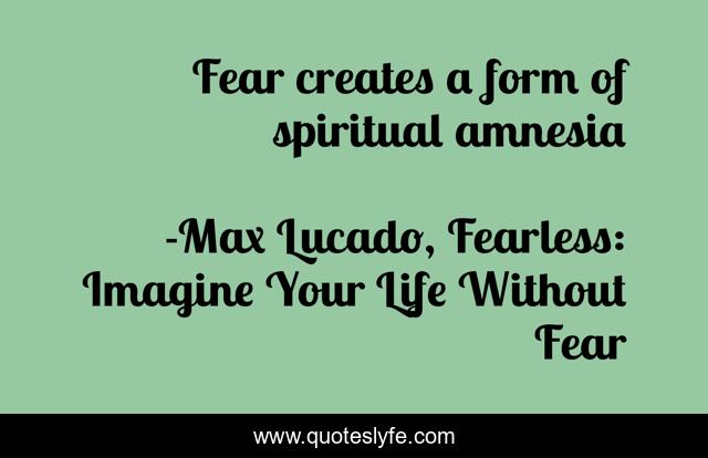 "Max Lucado, Fearless: Imagine Your Life Without Fear Quotes." Quoteslyfe.com, 2025. Mon. 08 Dec. 2025. <https://www.quoteslyfe.com/quote/Fear-creates-a-form-of-spiritual-amnesia-206351>.