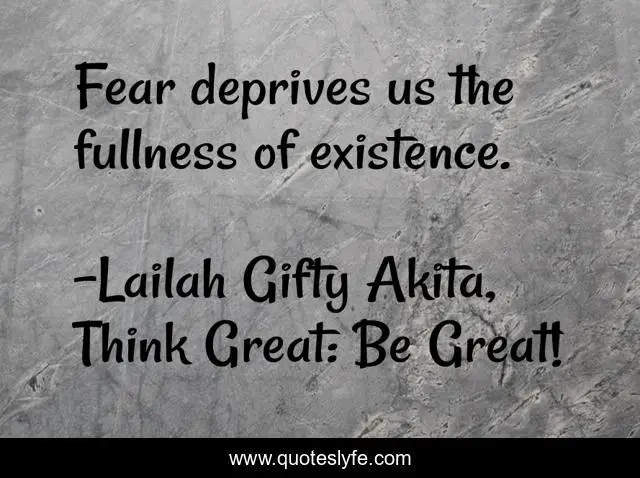 "Lailah Gifty Akita, Think Great: Be Great! Quotes." Quoteslyfe.com, 2025. Fri. 05 Dec. 2025. <https://www.quoteslyfe.com/quote/Fear-deprives-us-the-fullness-of-existence-91699>.