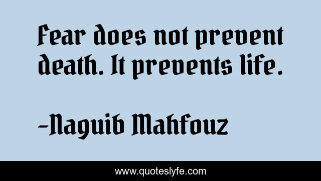 "Naguib Mahfouz Quotes." Quoteslyfe.com, 2025. Fri. 05 Dec. 2025. <https://www.quoteslyfe.com/quote/Fear-does-not-prevent-death-It-prevents-105497>.