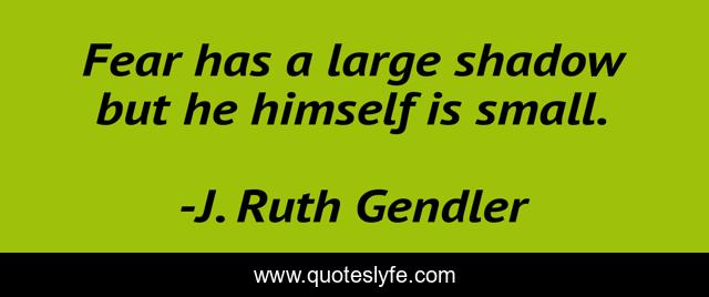 "J. Ruth Gendler Quotes." Quoteslyfe.com, 2025. Mon. 15 Dec. 2025. <https://www.quoteslyfe.com/quote/Fear-has-a-large-shadow-but-he-272449>.