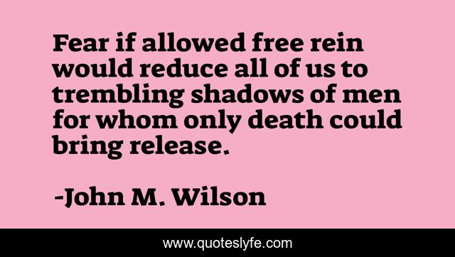 This page presents the quote "Fear if allowed free rein would reduce all of us to trembling shadows of men for whom only death could bring release.". Author of this quote is John M. Wilson. .
