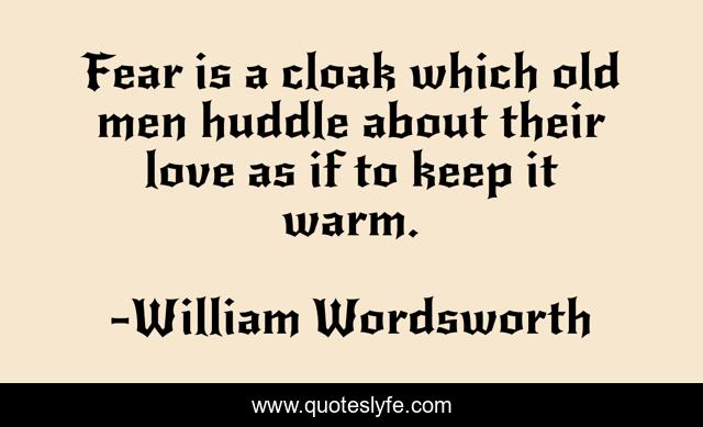 This page presents the quote "Fear is a cloak which old men huddle about their love as if to keep it warm.". Author of this quote is William Wordsworth. This quote is about ways, fear, overcome,.