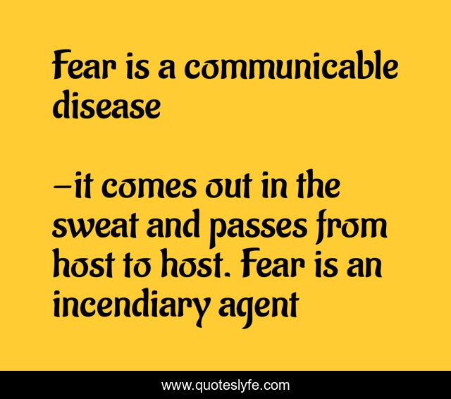 "it comes out in the sweat and passes from host to host. Fear is an incendiary agent Quotes." Quoteslyfe.com, 2025. Sat. 06 Dec. 2025. <https://www.quoteslyfe.com/quote/Fear-is-a-communicable-disease-233801>.